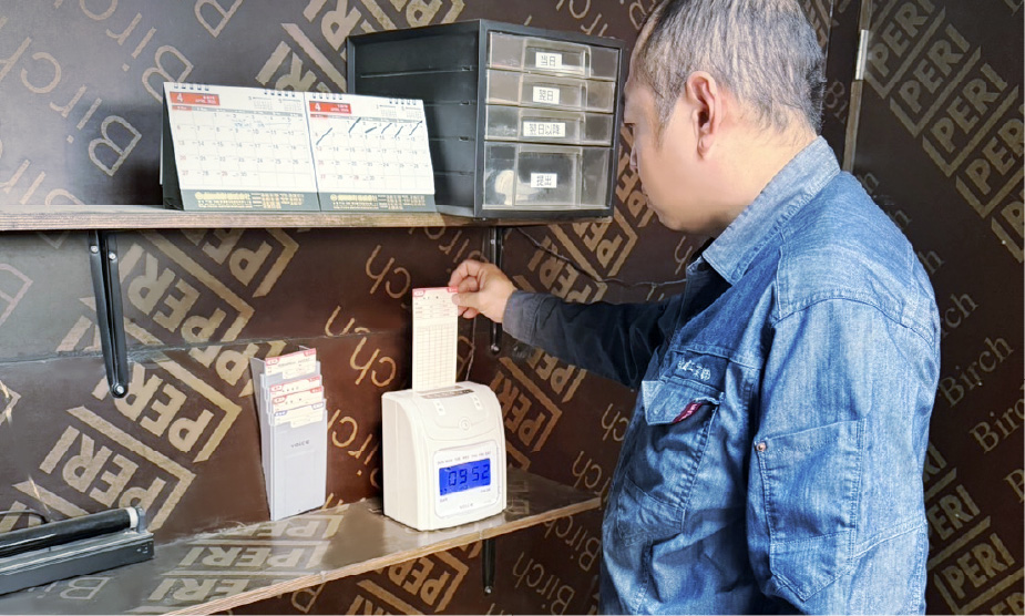 タイムカードを押してアルコールをチェックして安全を確認します。