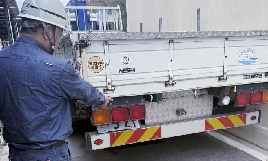 トラックのブレーキやウィンカー、タイヤの空気圧等を点検します。