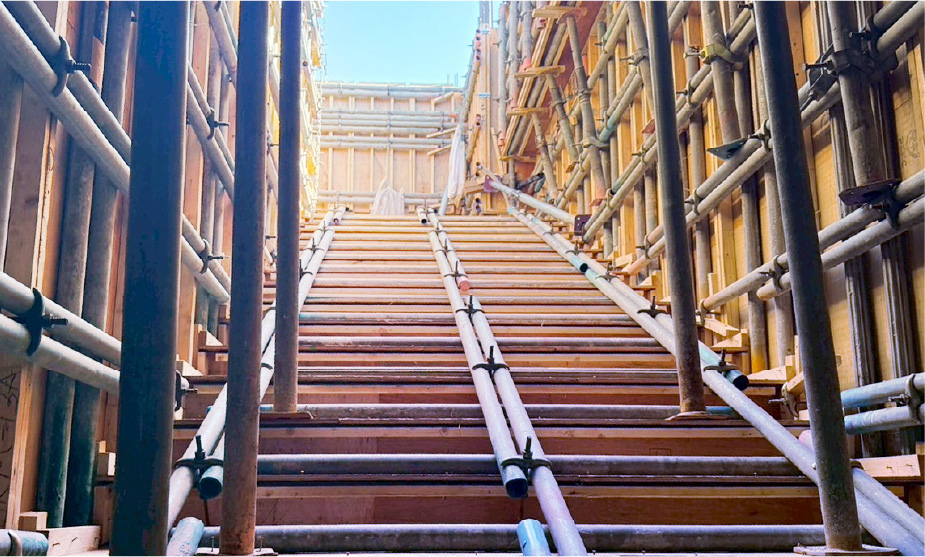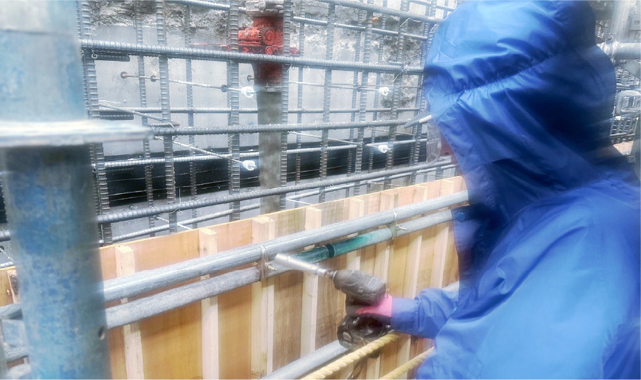 全ての型枠を組み上げて最後に締固めをし、コンクリートを流し込みます。